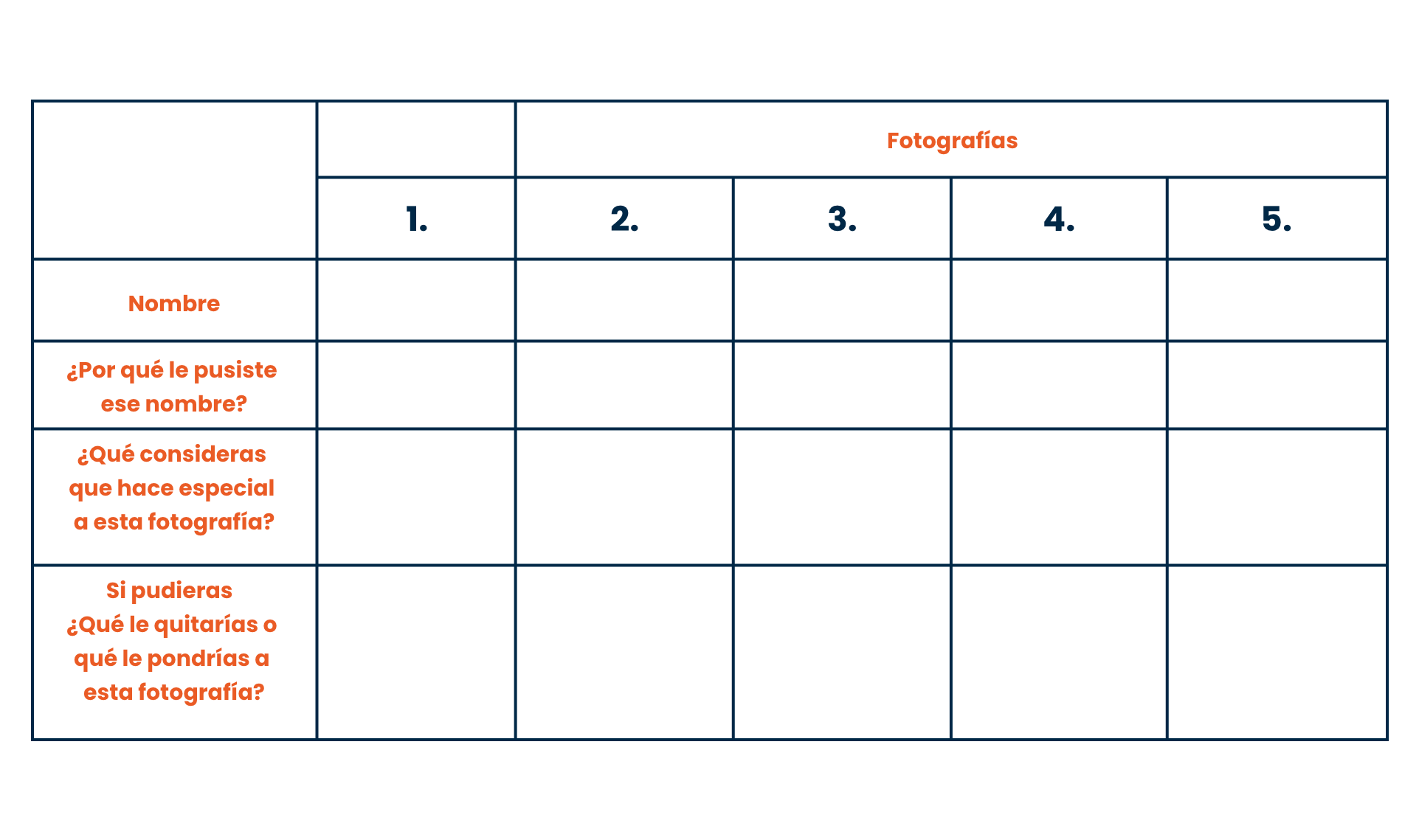 c. Realiza una descripción por cada fotografía. Usa la siguiente tabla: