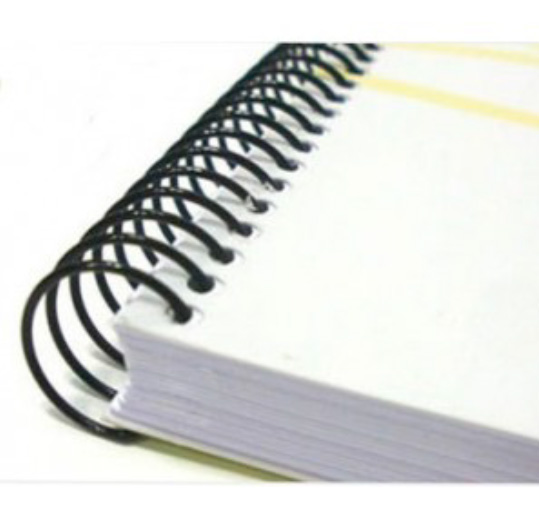 Se trata de pasar una espiral de alambre por una serie de agujeros hechos a lo largo del borde de las páginas:
