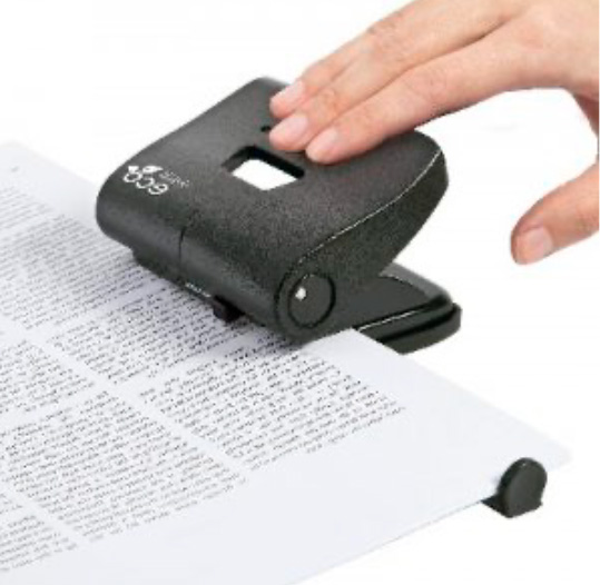 1. Tomamos los cuentos y hacemos dos agujeros utilizando una máquina perforadora de papel. Estas máquinas ya tienen la medida exacta de los ganchos legajadores. Si no tenemos perforadora, medimos la distancia de los extremos del gancho legajador y hacemos los agujeros, cuidadosamente, con algún elemento que tenga punta. Las perforaciones de todas las hojas deben estar en el mismo lugar para que quede bien encuadernado.