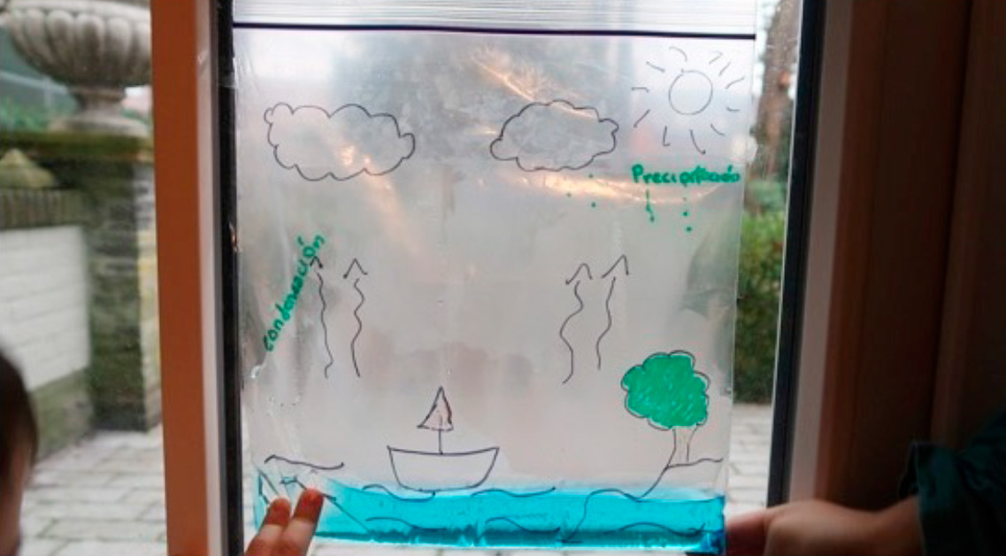 - Señalamos con el marcador el nivel del agua y, al finalizar el experimento, observamos qué sucede.