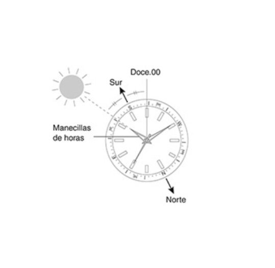 f. Si tienes la posibilidad, verifica el dato del reloj con una brújula.